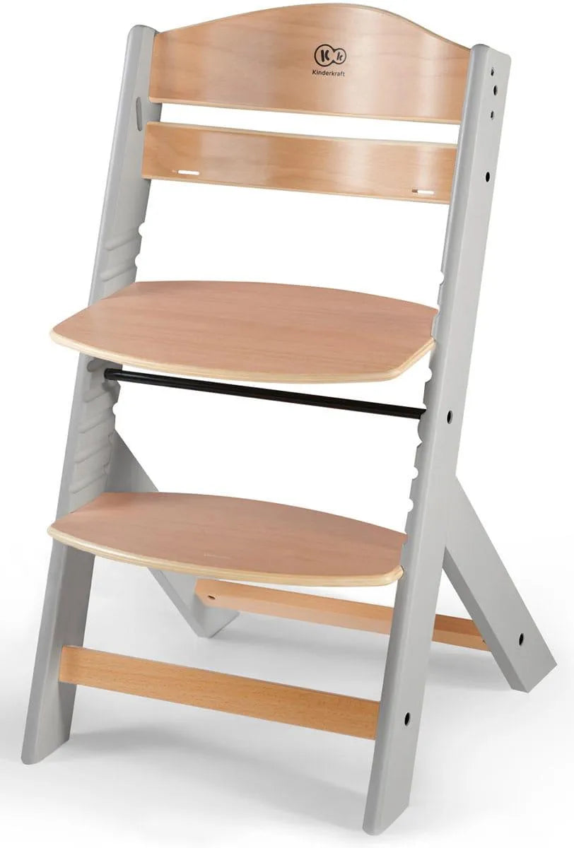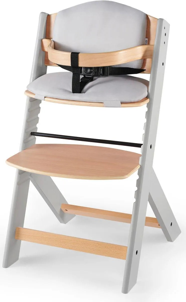 Medinė maitinimo kėdutė KINDERKRAFT ENOCK su pagalvėle, pilka