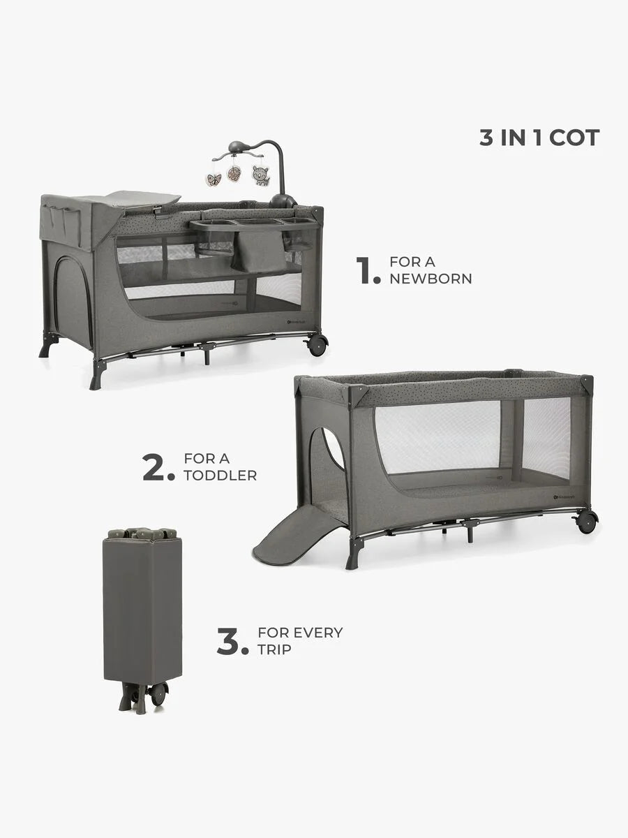 Kelioninė lovytė KINDERKRAFT JOY 2 su priedais, tamsiai pilka