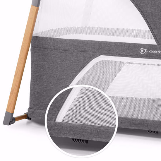 Lovytė pagaminta iš lengvos, bet tvirtos aliuminio konstrukcijos. Trys šonai yra su tinkleliu, todėl oras gerai cirkuliuoja, o tėvai visada mato vaiką. Minkštas čiužinys (91 × 52 cm) su medvilniniu, nuimamu ir skalbiamu užvalkalu suteikia kūdikiui dar daugiau komforto.