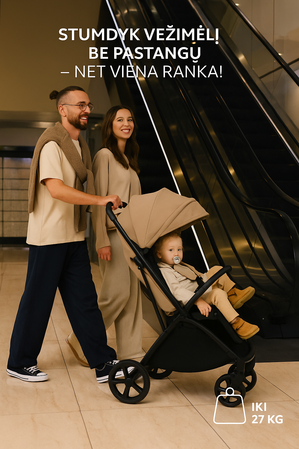 • Didelis, prailginamas stogelis su apsauga nuo saulės ir ventiliacijos langeliais